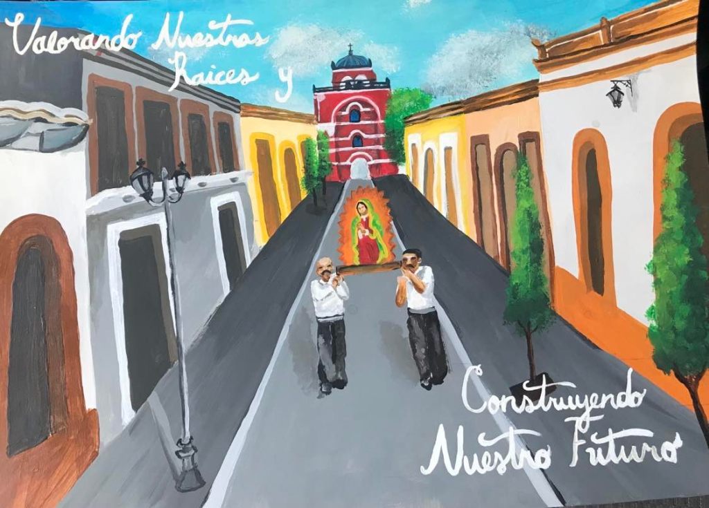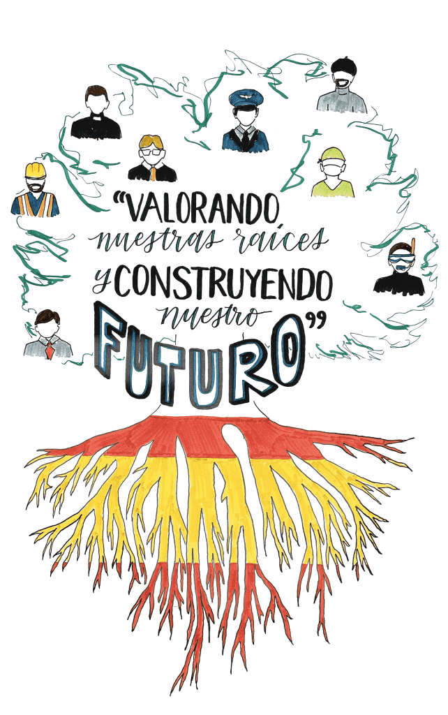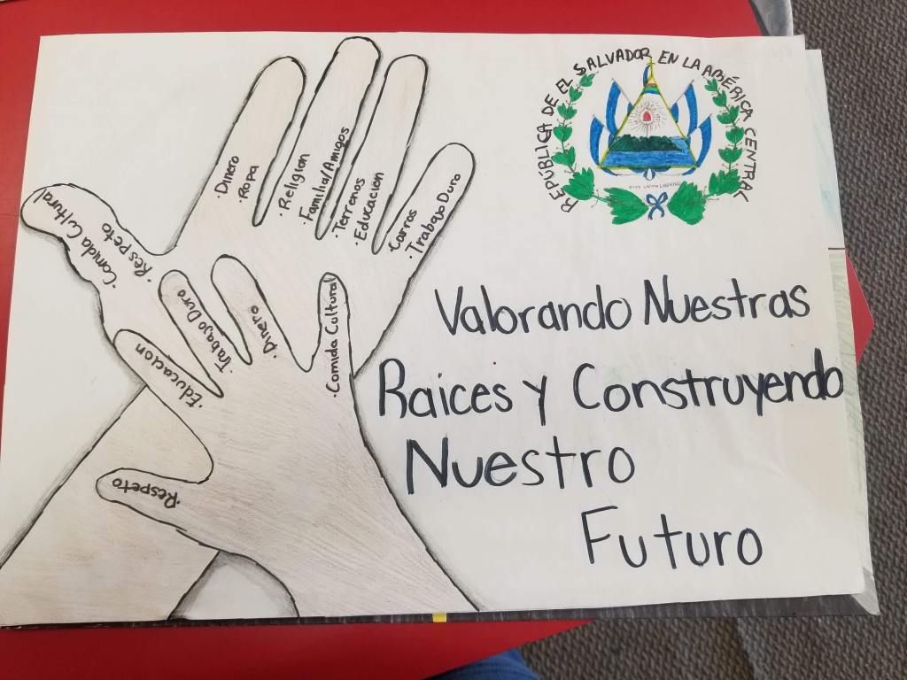 Delia sent us her student’s Eileen Salgado’s poster drawing. Ms. De Leon explains that Eileen is from El Salvador and the idea behind the contest’s theme was drawing her self-portrait dreaming of her country and how she can be of help to her culture in the future.