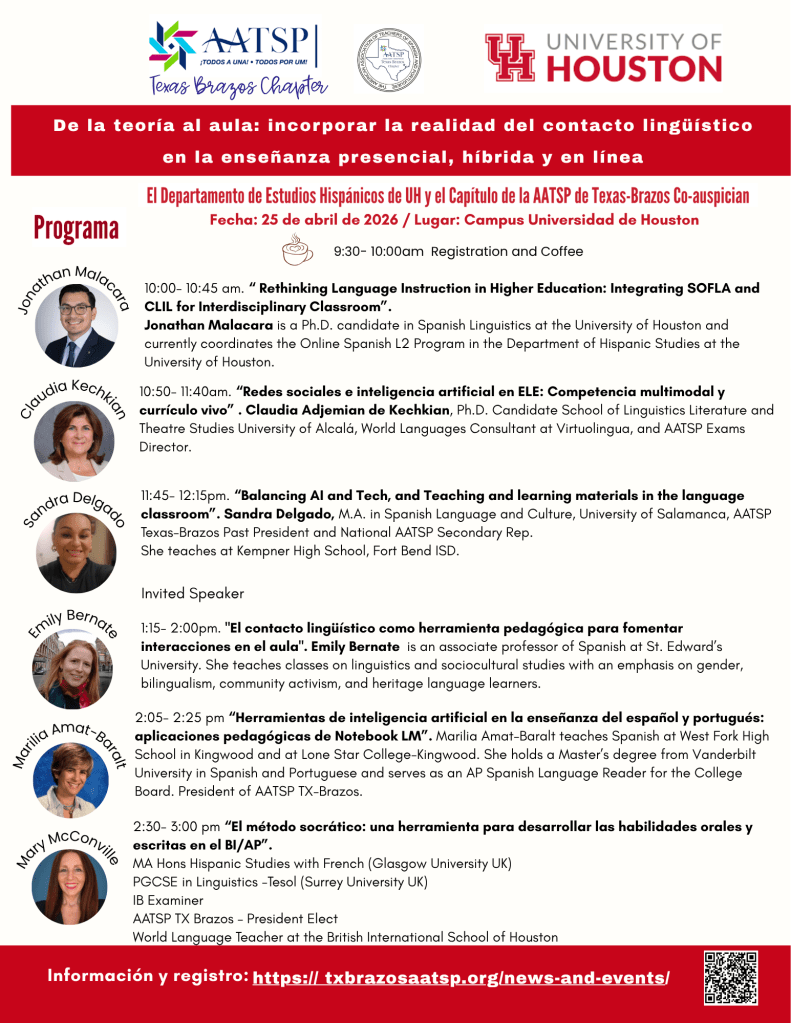 We’d like to thank our sponsors VISTA HIGHER LEARNING, EDINUMEN USA and VIRTUOLINGUA for their support at our PD Event at University of Houston.